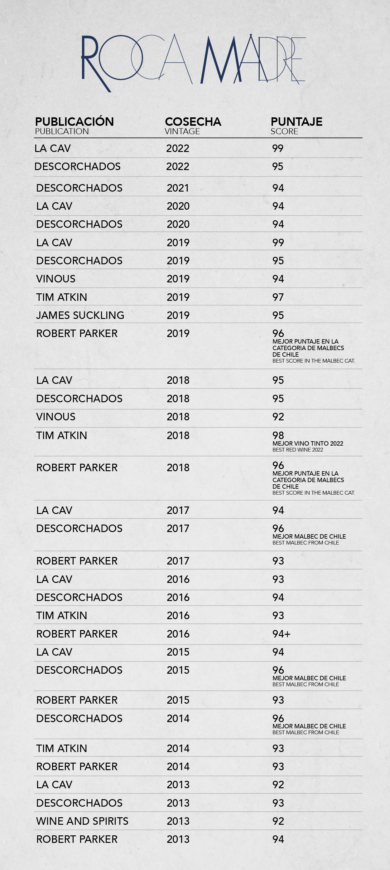 La nariz es una explosión de flores, muy elegante y por capas, sutil y compleja, que cambia lentamente en la copa con un frescor extraordinario y aromas exuberantes a durazno, hierbas aromáticas y flores. Taninos suaves y refinados y una textura increíble. Este Malbec parece reflejar el cielo despejado, las brisas frías y el paisaje impresionante y dramático en sus sabores brillantes y expresivos. Este es un Malbec de montaña, único y muy especial